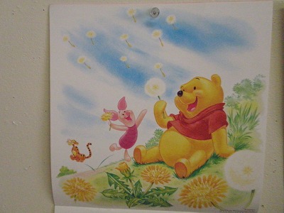 室内では、プーさんがたんぽぽの綿毛を口をぽかーんと開けて飛ばしてるというのに。。