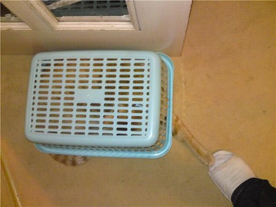 選択を干し終わった後に、各かごへ母親が畳んでわけてくれるのですが、そのかごの中に入るわ、かぶるわで、ホントっ邪魔!!です。